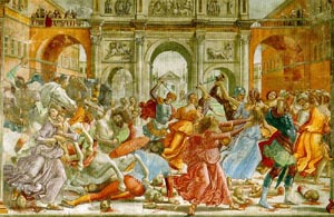 Domenico Ghirlandaio (1449-1494) Domenico di Tommaso Bigordi Ghirlandaio was born in Florence and studied painting and mosaic with the noted Florentine painter Alesso Baldovinetti. His style was also influenced by the Italian Renaissance artists Giotto, Masaccio, Andrea del Castagno, and Andrea del Verrocchio. Except for a period spent in Rome working for Pope Sixtus IV, Domenico Ghirlandaio lived in Florence, where he became one of the greatest masters of the Florentine school. Ghirlandaio's keen observation, solid painting, and old-fashioned style appealed to the conservative Florentine businessmen who became patrons of Ghirlandaio's workshop. Although not an innovator, Ghirlandaio brought to its height in the 15th century the realism that is one of the dominating characteristics of that school. He painted religious frescoes and easel pictures but often introduced recognizable Florentine scenery and portraits of contemporary personages attired in the costumes of the time. ![]() Ghirlandaio is particularly distinguished for his frescoes, among which are The Calling of Saints Peter and Andrew (1481-1482, Sistine Chapel, Vatican City); his masterpiece, Scenes from the Life of St. Francis (1485, Church of Santa Trinita, Florence); and Legend of the Virgin and Life of John the Baptist (1485-1490, choir of the Church of Santa Maria Novella, Florence). He also painted altarpieces, including Adoration of the Shepherds (1485, Santa Trinita) and Virgin in Glory (1490?, Alte Pinakothek, Munich). Among his easel pictures, all painted in tempera, are Adoration of the Kings (1487, Galleria degli Uffizi Gallery, Florence) and Old Man with His Grandson (1480, Musee du Louvre, Paris). Among Domenico Ghirlandaio's pupils was the famous Italian Renaissance artist Michelangelo. Domenico often worked with his brothers Benedetto and Davide. ![]() |